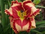 Hemerocallis Lies And Lipstick was hybridized by J. Kennebrew in 2004. Tetraploid, 25 Inch Scapes, 5 1/2 Inch Flowers, Early to Mid-Season, Reblooms, Fertile Both Ways,