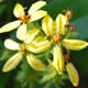 Clusters of canary yellow star shaped flowers throughout the year on a compact, small growing vine.