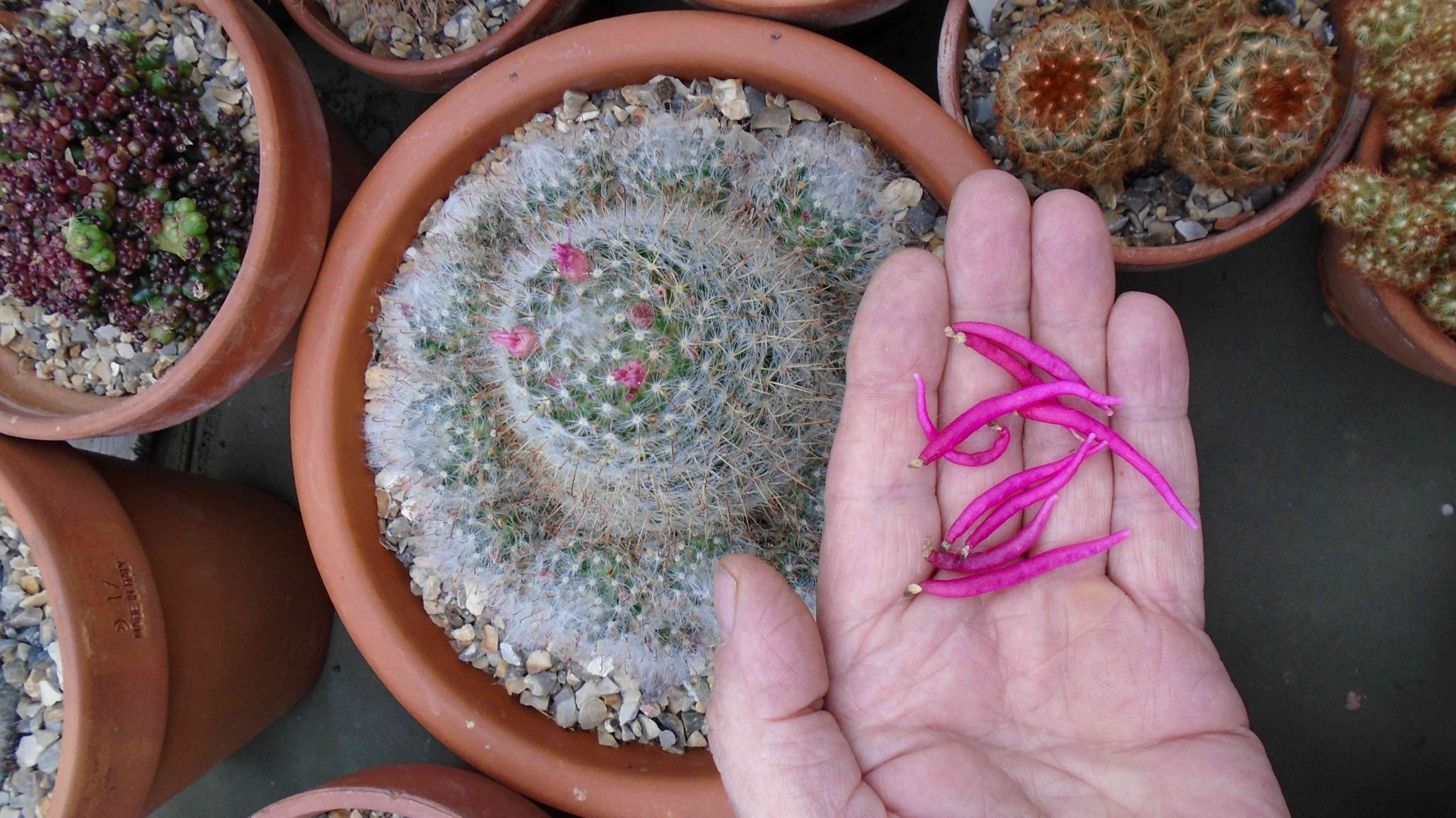Rebutia minuscula This one produces lots of seed but looking in the shop I've only got 2 for sale so it looks like they don't have a very good survival rate. Either that or I sold them all