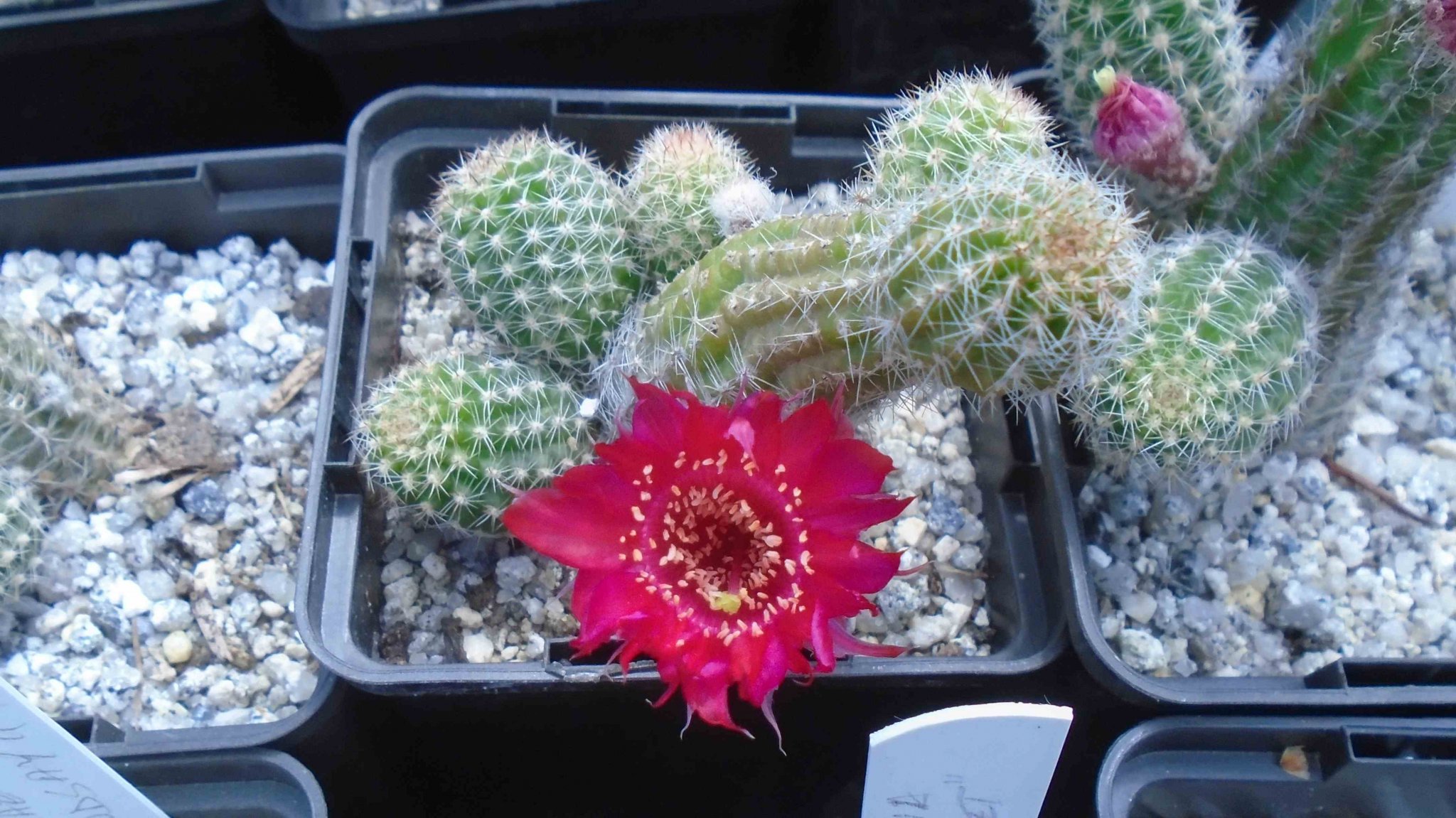 Cleistocactus strausii has flowered for the first time, think he might make a good friend for Cousin It One of the Peanut cactus hybrids has flowered too... Along with the second Echinopsis subdenudata flower (missed the first one as it was behind the door )