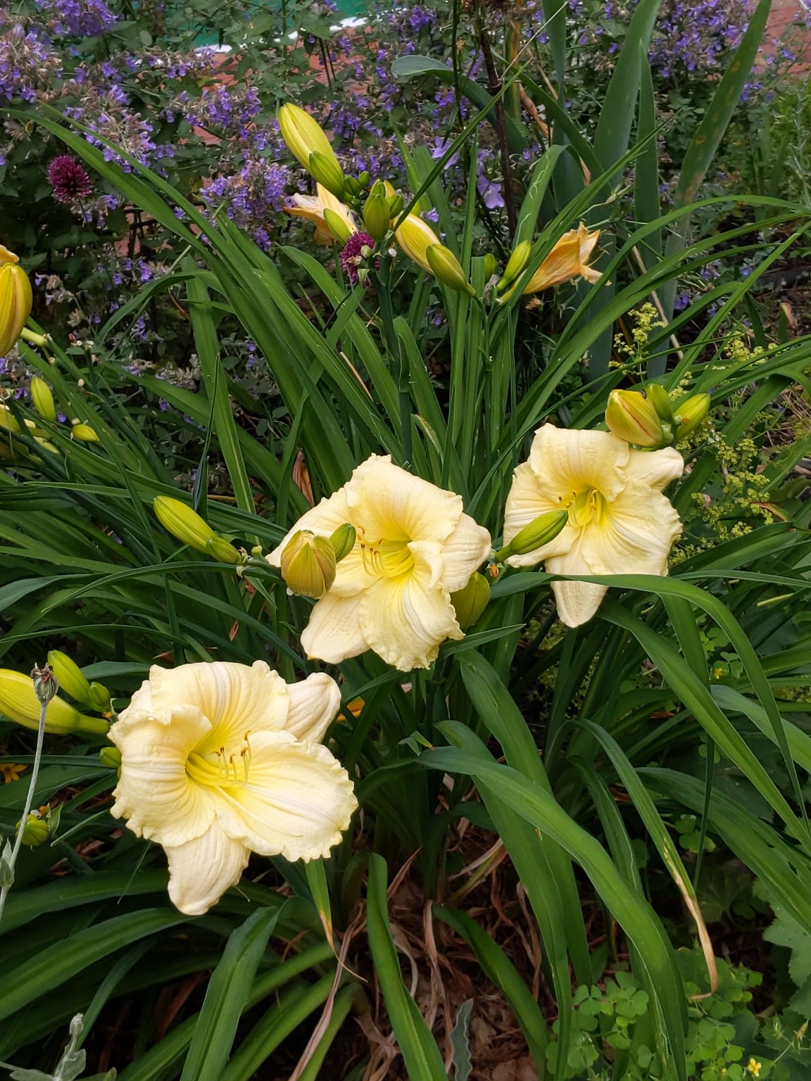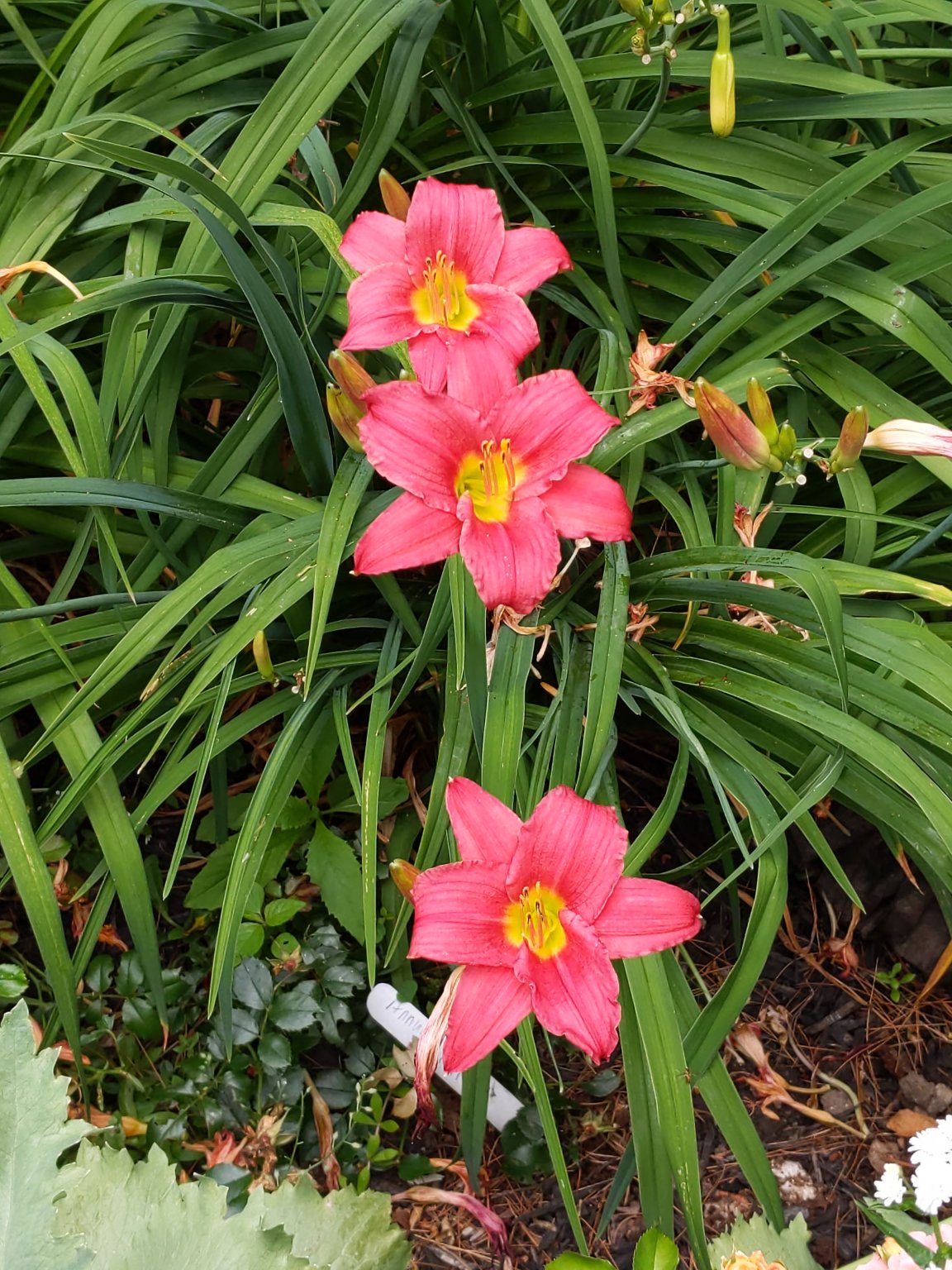 The season began with a daylily from seed named Summer Solstice bracketing the solstice with flowers on the 20th and the 22nd. Close enough! The season has progressed with about 30 opening up so far. That leaves about 15 more to flower. I did notice some without scapes. I did have one unusual new from seed flower. My first double daylily . While it will not win any prizes it is my first double. Years ago it was left in an old bed while the rest of the seeds from that year were transplanted elsewhere. About 9 to 10 years ago....this year it decided to flower. Jerry
