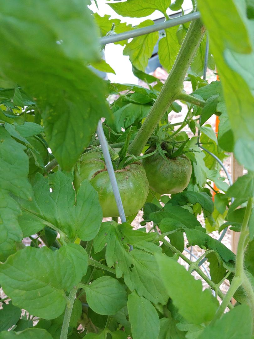 I only grow red tomatoes, so green would be for fried green tomatoes or pickled tomatoes. Hornworms are on my kill list, if I see tiny black poop on the leaves, I hunt them down, clip off the branch they're chewing on, let it drop into a small pail of soapy water and drown. I wear gloves because they scare me to death. and infuriate me
