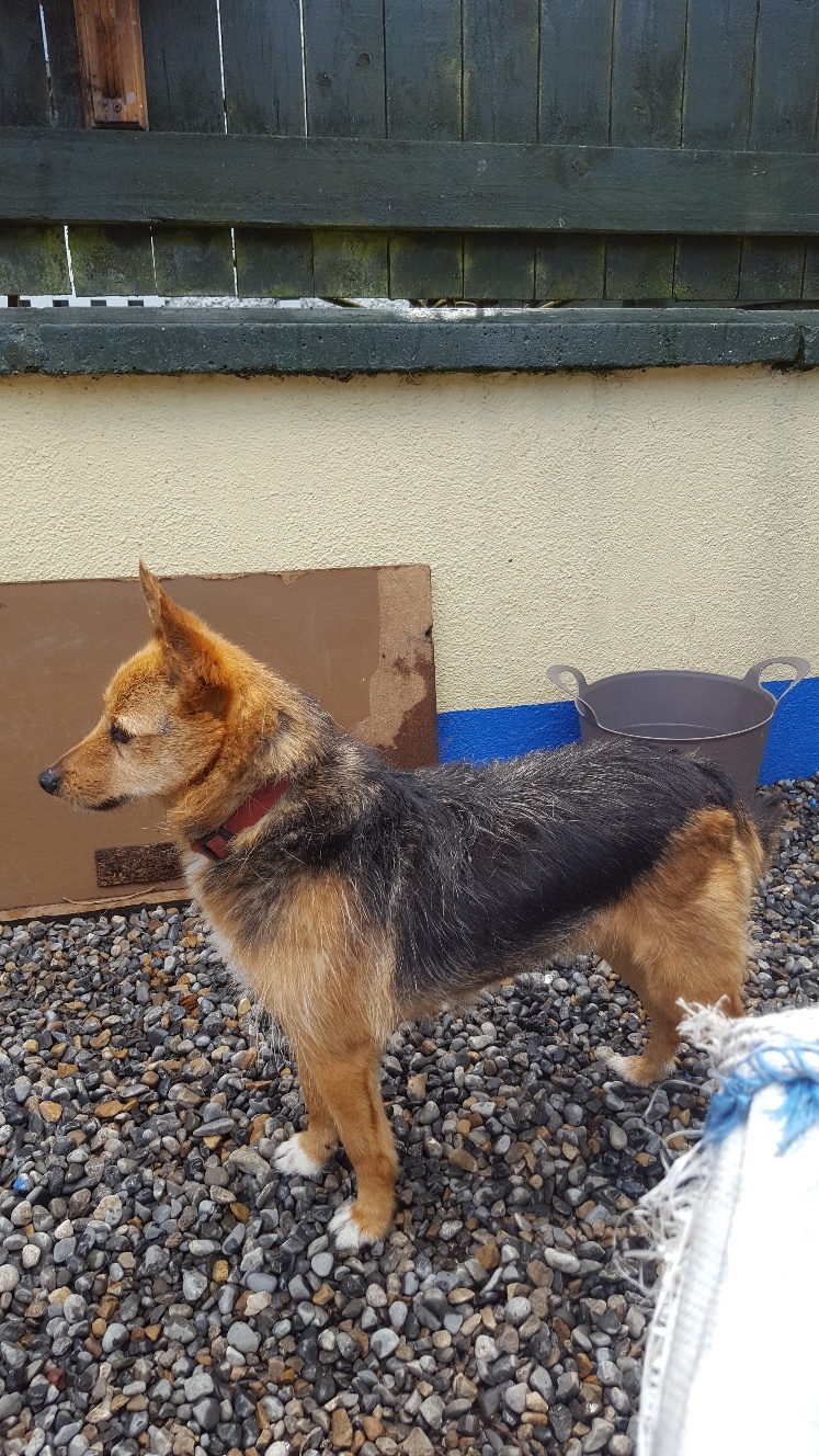As i mentioned in a previous post Molly was attacked by another dog in the Rescue Center the day before i picked her up,..i convinced the staff to let me take her home with me as she would recover far quicker with less stress and no other dogs present to scare her further,..she has about 20 stitches around her neck,..mostly on the left side the remainder on the right and back of her neck,..they gave me medication for Molly. As the stitches were around the neck a collar could not be used nor the Lampshade type protector to stop Molly scratching her neck. Everything worked fine Fri,..Sat and Sun,..but on Mon night Molly tore away a few of the stitches,..believe me it looked horrible. Today Molly spent some hours having the stitches replaced,..this time they put non removable socks on her back legs preventing her reaching her back legs to scratch her neck,..so far all is well,..seven hours later. Some images of Molly while in the Rescue Center,..in one shot there is a small Terrier behind her,..were that dog also available i would have took both of them,..i learned after i went to the Center that both dogs arrived together and were together in a Kennel for some time. Before the dog attack. The cute little Terrier behind Molly. How Molly looks after the attack,..shaved with stitches. She has improved since this picture captured last Friday,..the blood washed off and a new stitches and flow tube.
