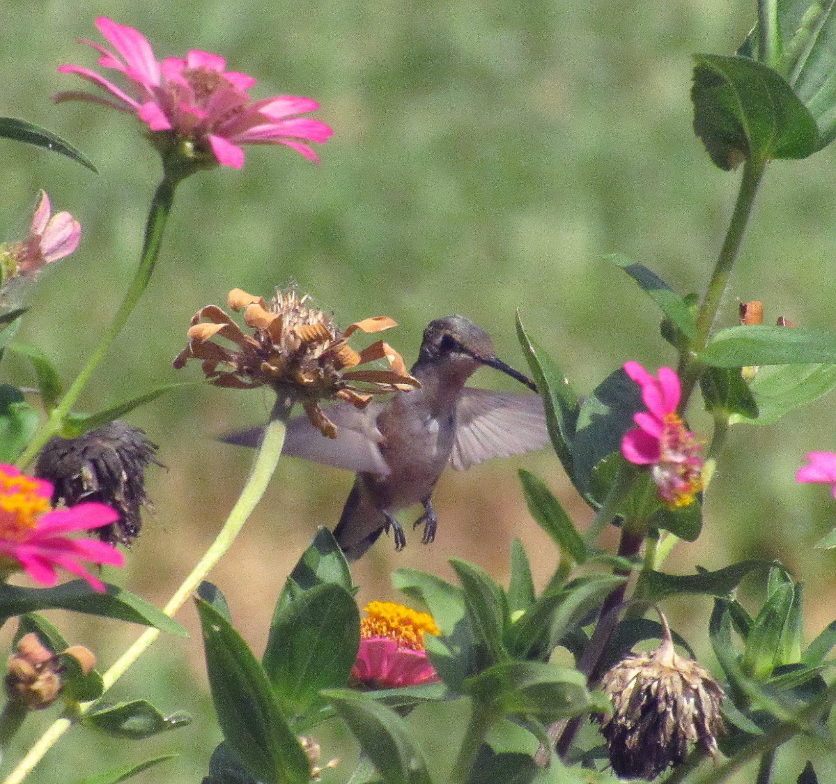 Our hummingbirds love zinnias, probably because these are some that grew from seeds that Netty sent me (the zinnias, not the birds!).