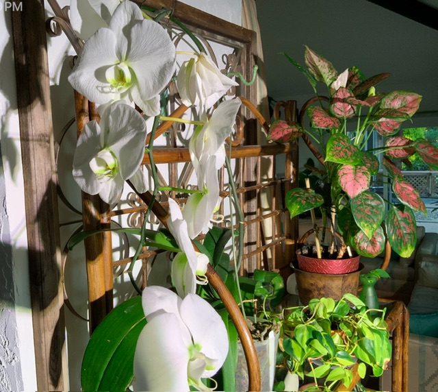 A few Hippeastrum’s in bud and orchids show their blooms.