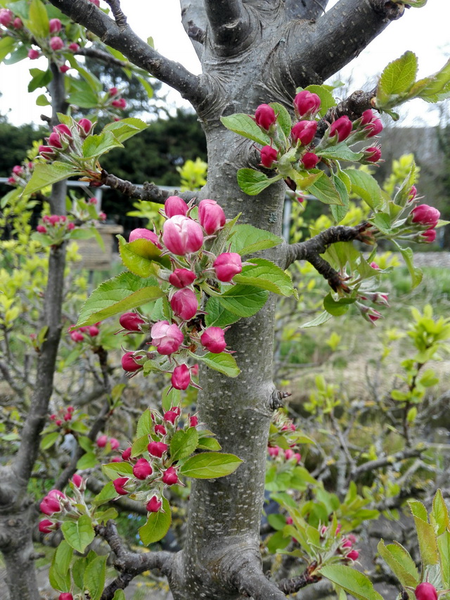 Of course it´s work, work, work in the veggie plots; however, there are other things going on at the same time...in the other half of our garden ( the Flower Garden). Oké, the flowers blooming now are not exotic and or particularly impressive, but for the lottie at this time of year, They are a welcome sight. Most of the work has been done in the veggie plots, the paths are rough-looking and I am cleaning the plots little -by-little. I had hoped that the Myosotis blooms would look better on the foto, but alas. The honey bees and bumble bees are loving them. Speaking of honey bees--they are flying and bringing in loads of pollen//a good sign that there is brood. A blow-in Corydalis is too cute to throw-away. The Wisteria is loaded with buds and one just couldn´t wait for the rest. In one plot the Exochorda and the Brem are really going to town We have our fruit trees in the flower section. The plums have bloomed and now the apple trees are exhibiting lovely buds with flowers carefully beginning to open. We have seen the first bumble bee three weeks ago, the first butterfly (Aurelia) two weeks ago Lady bugs a little more than three weeks ago and today the first cabbage butterfly. Gurrrrrr. That was the insect world//but four days ago we saw the first frog in the canal and then there is this-- It is a coot. Our garden neighbour is an artist and she made a nice sketch of this same female coot. The nest is at the point of land between our two gardens. She sent an e-mail with this drawing. Then to end this thread a small test. What is this?