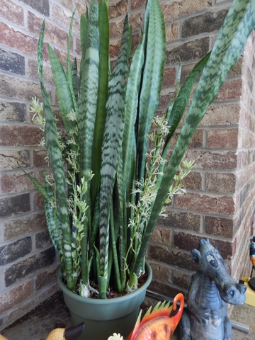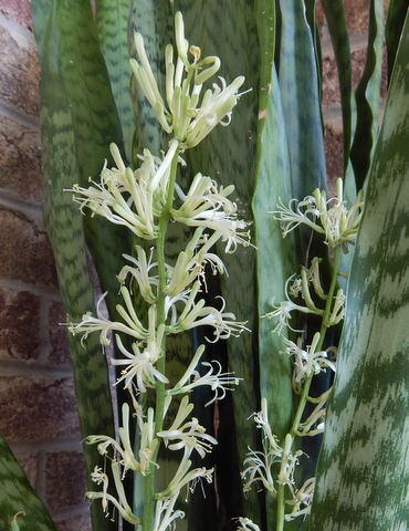 I was so thrilled this past August to once again have my Mother In-laws tongue bloom. I usually only had on or two blossom stalks. But this year I had at least 6. The blossoms smell like Juicy Fruit gum and are quite unusual . I wonder how many of you remember that Gum?