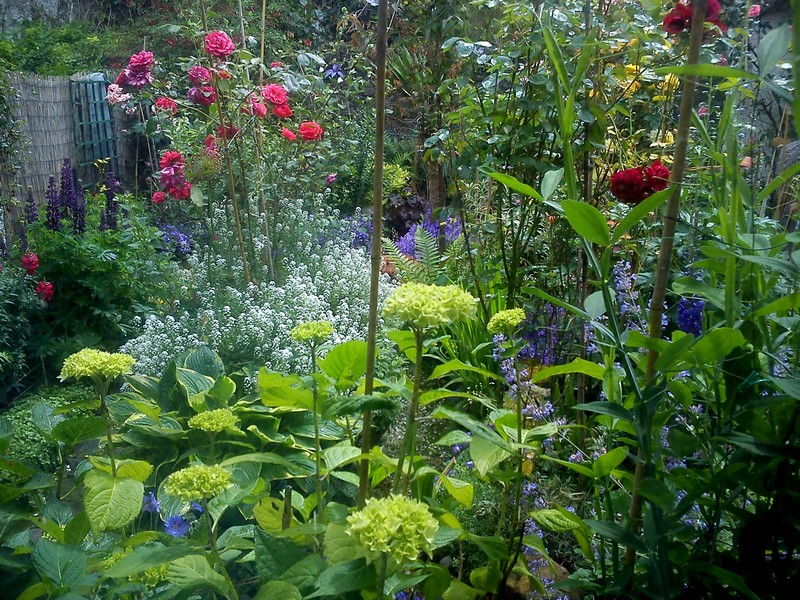 June 21st 2016. Alyssum lobularia maritima 'Sweet Alyssum'. Campanula portenschlagiana. Oxalis debilis. Picked these for a lady friend. General View. Hosta in bloom.