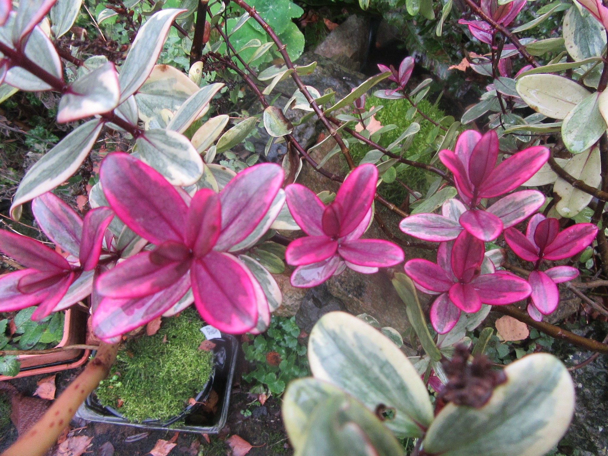 Those 'Hebe' are all from cuttings only about 3 inches long,..slow to grow into bigger plants but impressive in colour to have at this time of year.