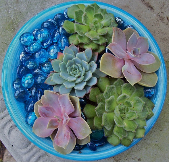 Yes, yes, yes, such great pics of such great combos! So glad to see so many great ones! Crazy combo hanging pots: Mostly succulents: My 1st mini garden is doing well through its' 3rd winter.