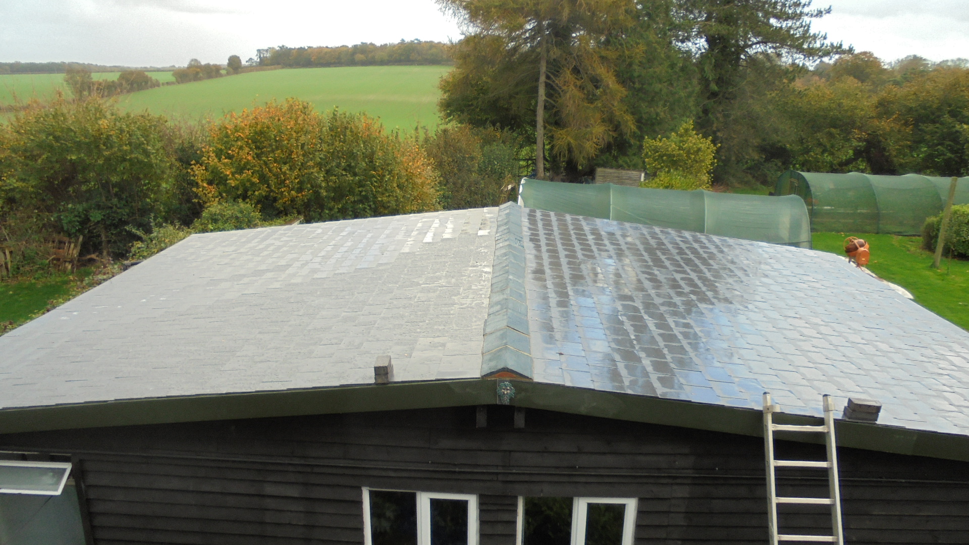 Maybe Zigs forgot to answer this DM, but they are fibre cement slates. They shine when it's been wet, and it sure has been wet lately.