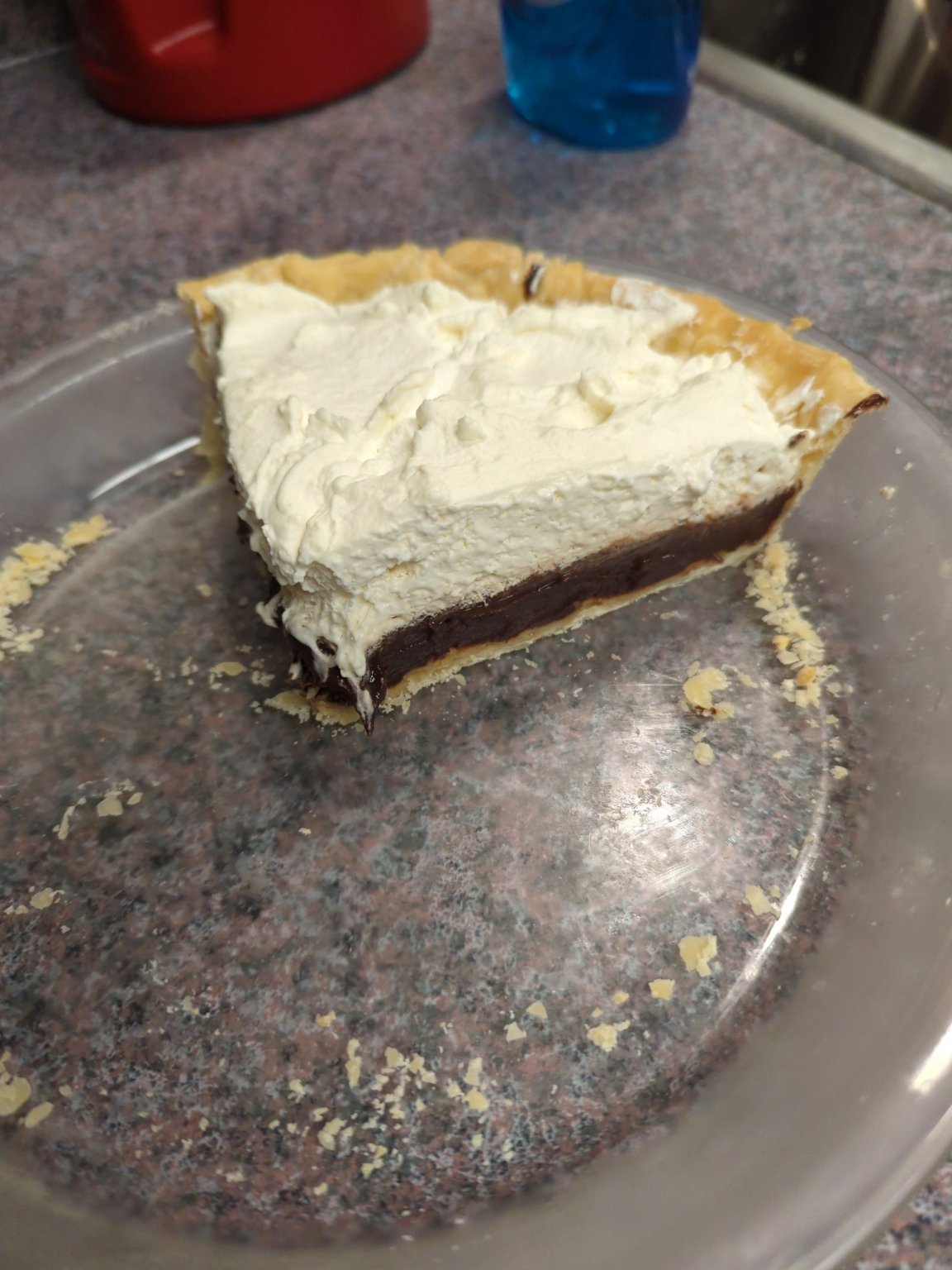 It is kinda feasty. Glad for the opportunity really. Becky makes that pie...somehow. I know she whips cream for the topping but I am not sure about the cadmium part. Cocoa I think, some pudding type recipe.