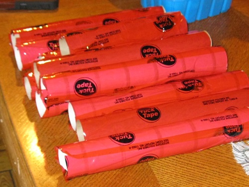 I also "magic taped" some paper towel rolls to try on some of the leeks this year. It will be a while before they go on, but I was in the taping tubes mood last night so everything was done.
