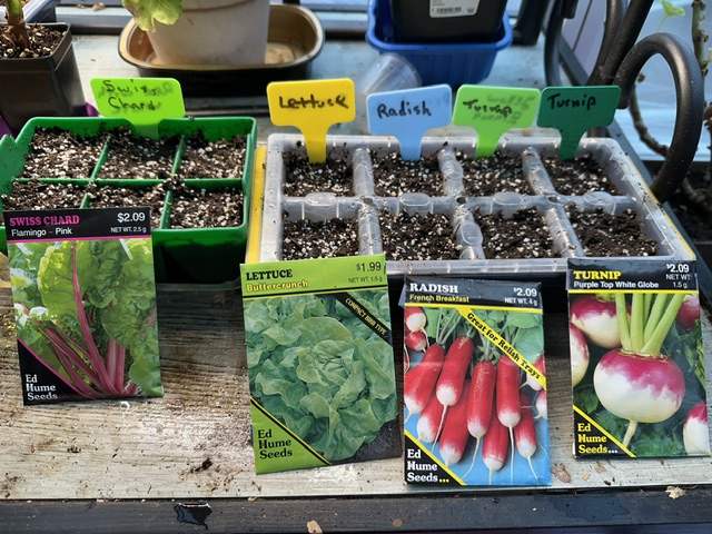 Today I planted a fresh batch of radish, turnip, lettuce, and Swiss chard (which originates in Sicily, not Switzerland:confused:).
