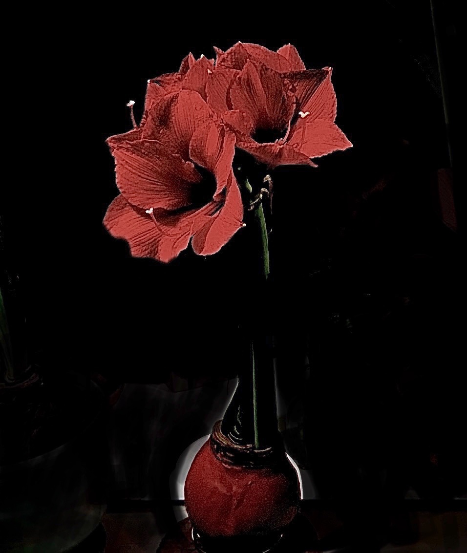Daniel… was it started from a cutting? A very unusual color too! more amaryllis for the Holidays…from a waxed bulb..they can also be hanged upside down on swags.