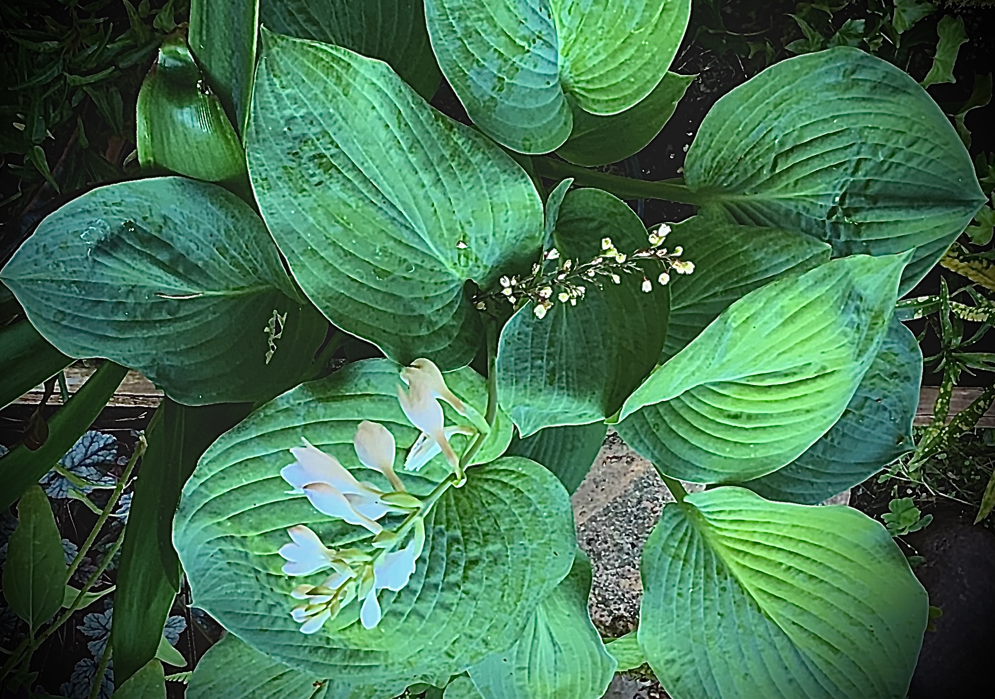 Hostas are bloomin. I try to pick the thick corrugated leaves and if you look closely at the leaves you’ll see tiny spiky hairs which works well at keeping the slugs and snails away. Geranium blooms.