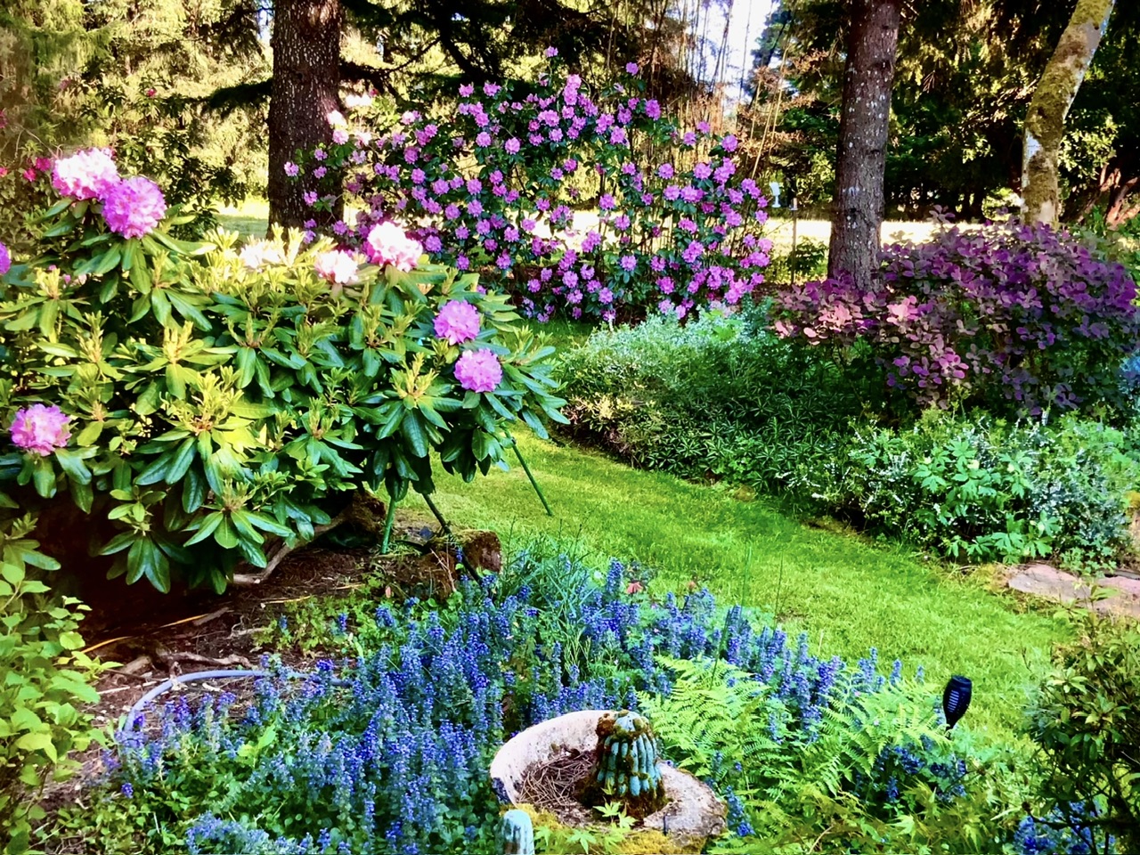 Today we celebrate Rhododendron Season. It’s in full swing here in this zone. Many different colors . And… Oh and let’s not forget the Azaleas .