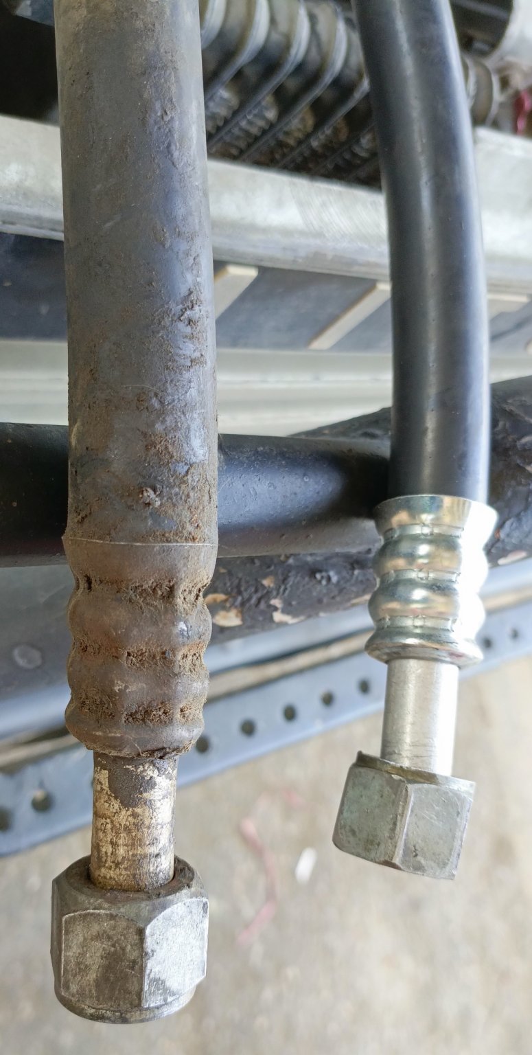 Don't know why whenever I try to point the camera up at the sky - There's always a tree obscuring my observation. It as far as I can tell, it's morning, and the climate is hot in comparison to Europe and North America. So I now take this opportunity to fix my car's AC. Just look at these pictures to get an idea how corrosive my environment is. And what lengths I have to go to, just to stay cool... This picture below is of the inner cooling coil of the car's AC - See how rusted it is? That's what failed... So this is the new inner cooling coil that I bought to replace the busted one. But after installing tht he coil above, it became apparent that the flexible pipes too has failed at the joints, (from rust obviously). So off I went again to the main market of such things. To get the replacement pipes also. Below you can see the new and old pipes together dude by side... So this is what I now need to do - Or else driving without an AC is now equal to murder, (believe it or not). And some people still say that climate change is a hoax...