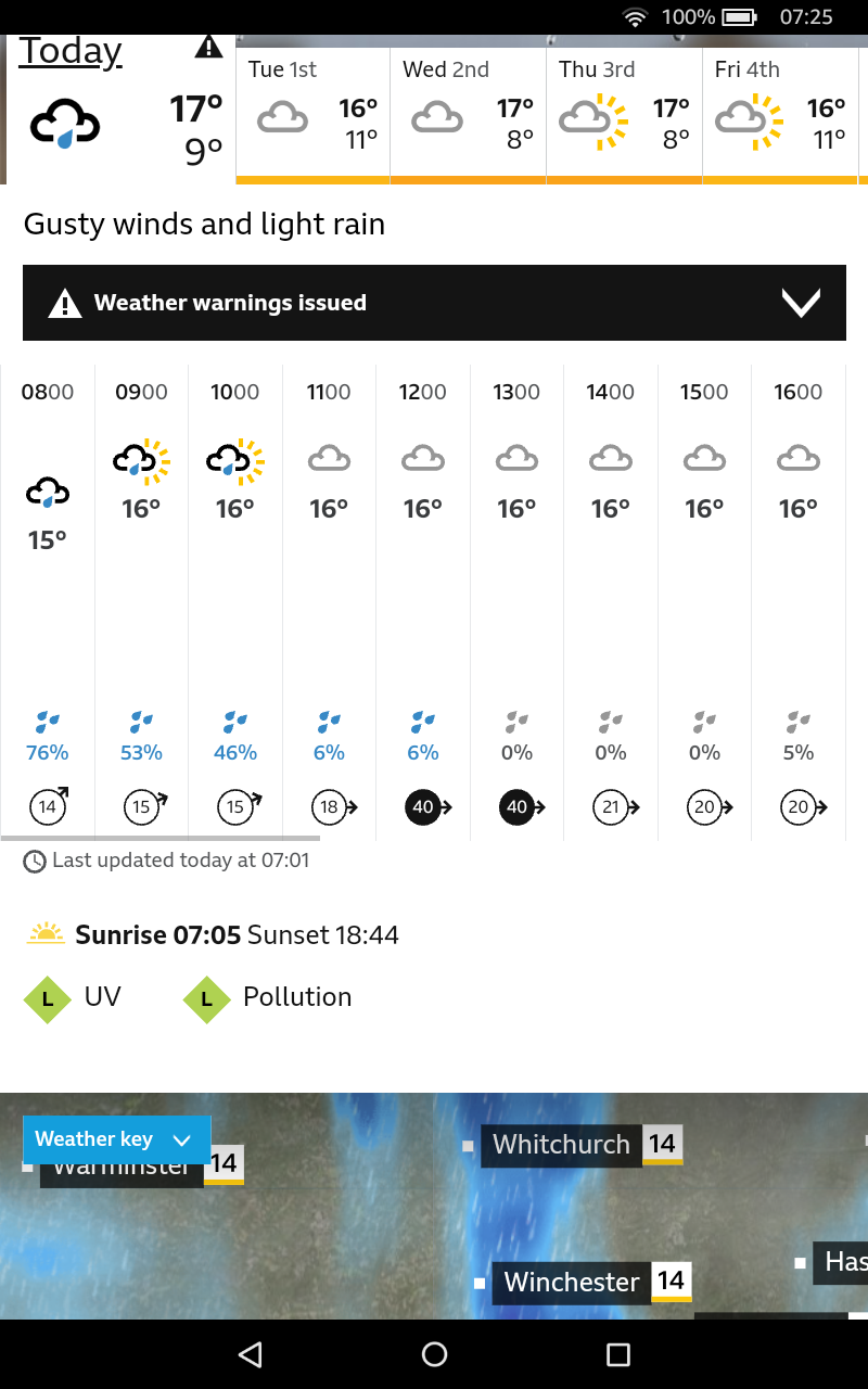 All morning it's been raining and still is. Light rain and a moderate breeze from the north west temp 12c feels like 11c