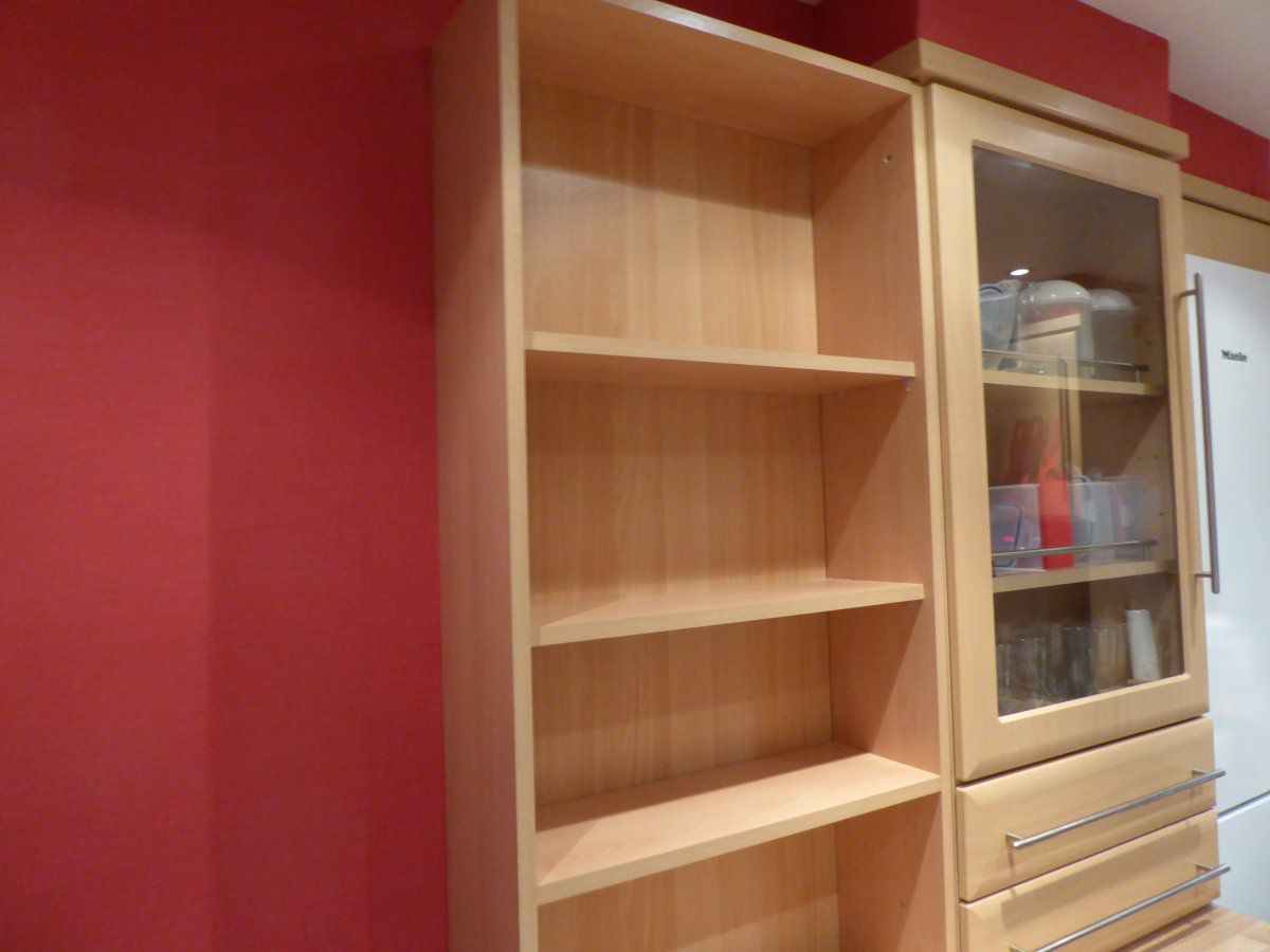 Today I started on the new cupboard my wife wants to go next to this one in our small kitchen.. Originally there was a "one man breakfast bar" next to it. But "stuff" always got put on it, due to lack of space. The tall chair's still there, we just hang hand towels on the back of it. The kitchen company that installed the units have long ceased trading, (well, we've had the kitchen fourteen years) and as a job, no firm would want one this small. So I'm doing it myself. Just a case of finding a door manufacturer who could make a door and two door fronts, the latter I would make into a door of false drawer fronts like this one. They match a deeper unit with drawers on the other side of the kitchen. Lots of samples of laminate required before I found a firm that had it and could make a door with the correct profile. Plus find another firm which could supply a length of the right style and finish pelmet. The hardest task. The cabinet I made out of bog standard 18" melamine which matches the original, it's pretty common. Just a case of getting a woodyard to cut it to size. Some fetlling above it needed as part of the original pelmet will have to be replaced and the top boxed in. I've some spare wallpaper. The shelves are adjustable, well they will be.. if I drill some more holes for the shelf supports. I've three spare shelves. I've also got three spare handles. Just waiting for the doors and pelmet. Then that's it for projects this year..I think!