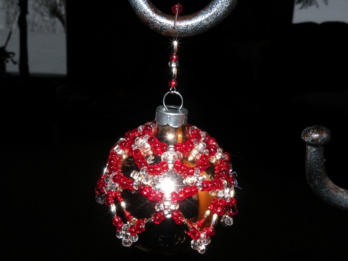 I made two more beaded Christmas ornaments. I'm hoping Hubby is well enough to put the tree up today. Until then they are living in the Ficus tree. I think, once I get better at making these, I will give some to family as gifts next year.