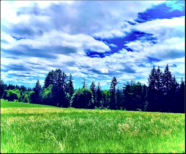 Today looking out over the pastures is a bit grey , foggy , and the marine layer , now we are stuck in the clouds.